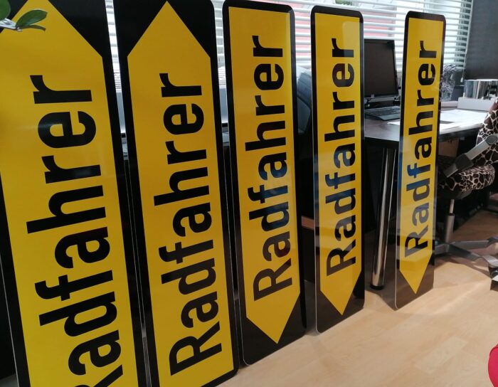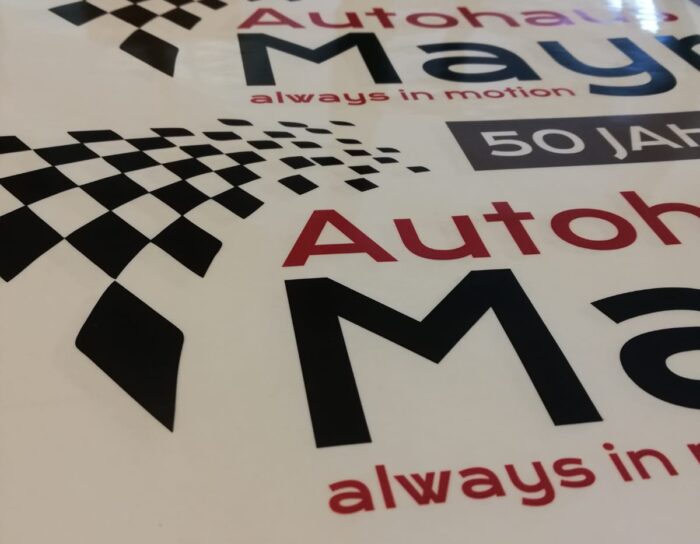 Von der gemeinsamen Planung, über die Herstellung der Klebefolie, der Folienschnitte oder die Fertigung der Schilder, sowie auch die Durchführung der Beklebung oder Montage am gewünschten Objekt.