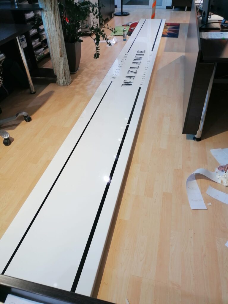 Acrylglas lasergeschnitten mit Folien rückseitig beklebt